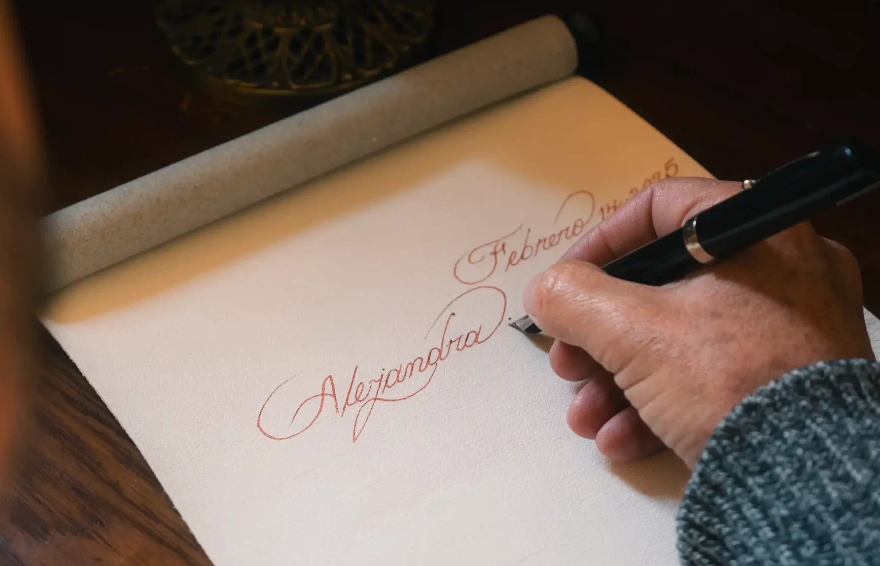 Cada pergamino es escrito a mano con arte caligráfico, convirtiendo tus palabras en una pieza única.